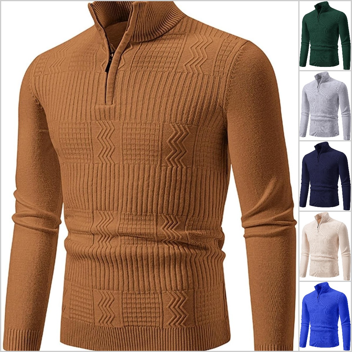 CLEARANCE SALE🔥 Men's Zipper Casual Slim Knit Texture Pullover Sweater