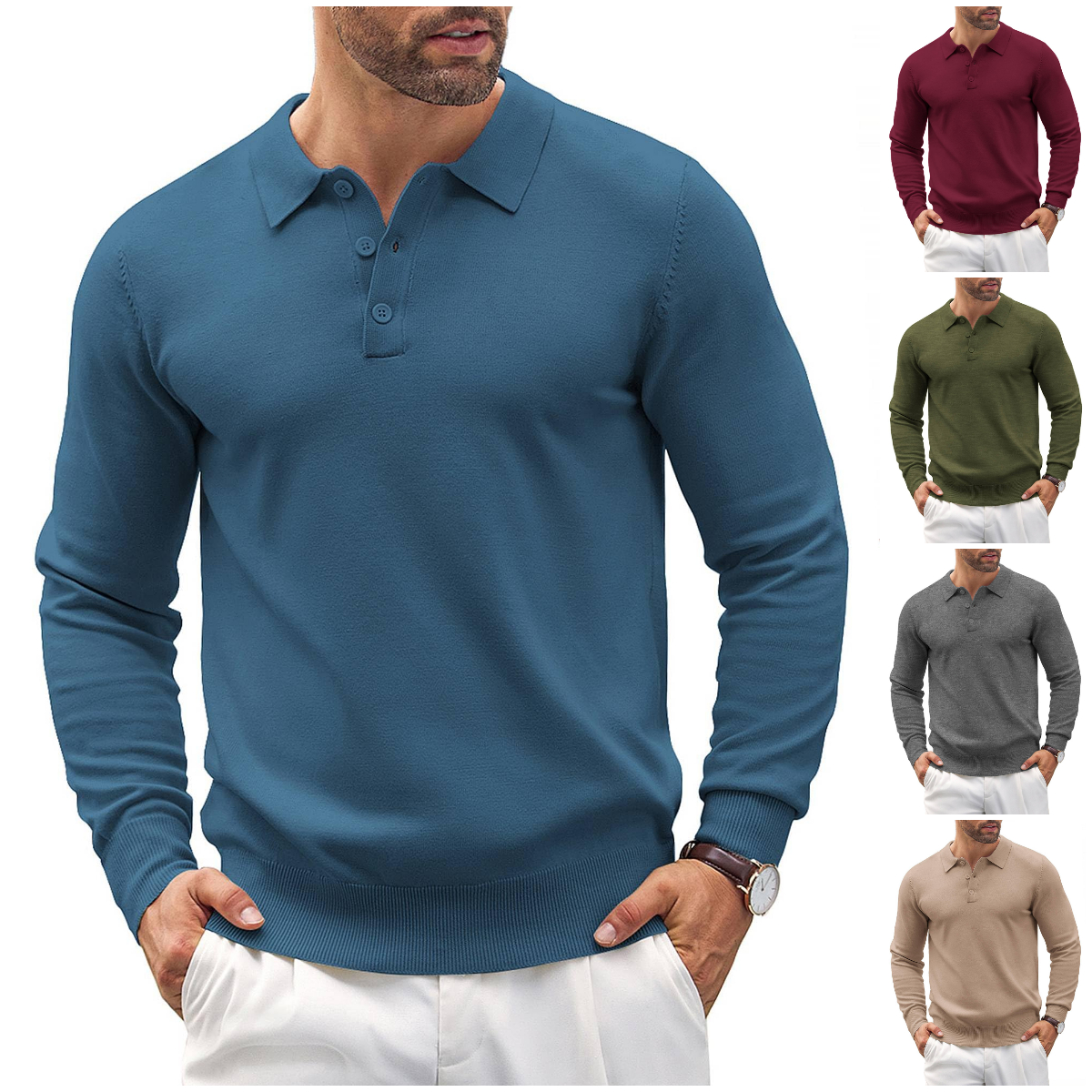 NEW🔥 2025 Men's Knit Casual Button Down Long Sleeve Classic Polo Shirt