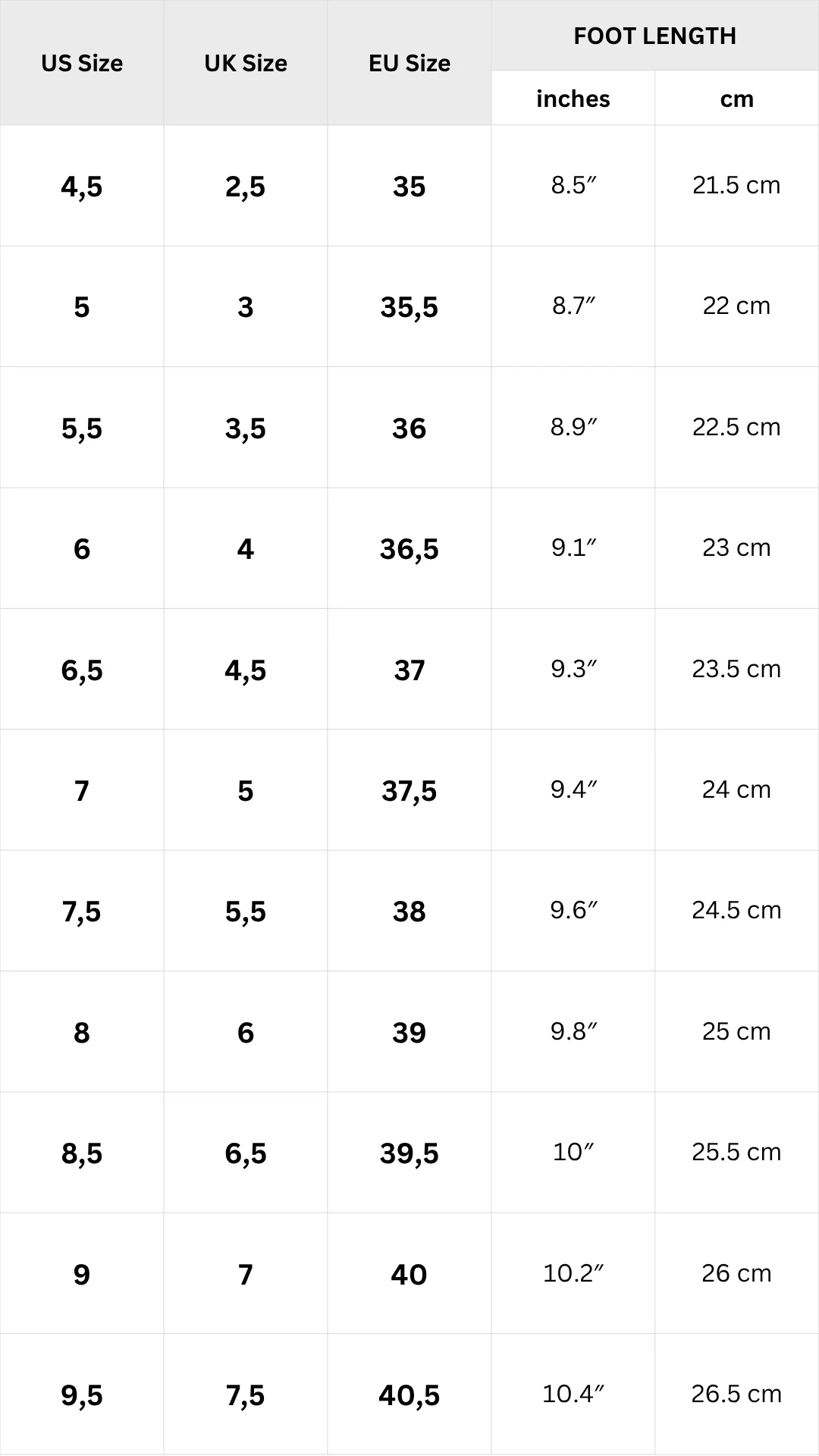 Available in sizes 4.5 – 9.5.