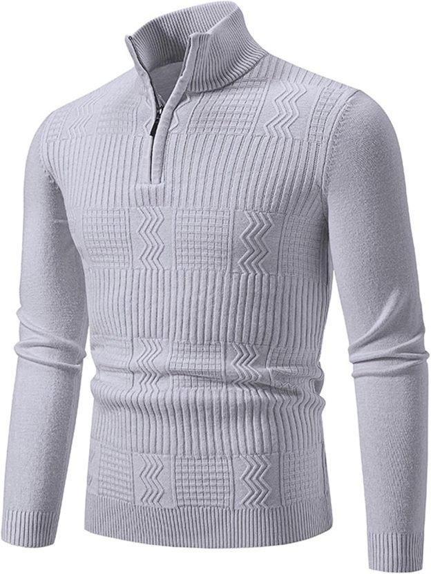 Men's Winter Casual High Neck Zipper Long Sleeve Knit Shirt