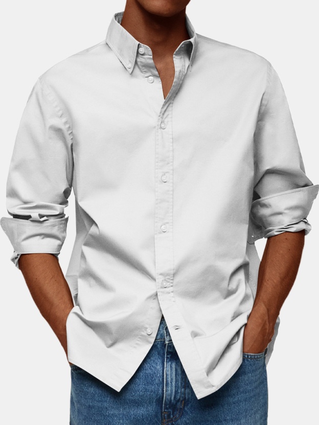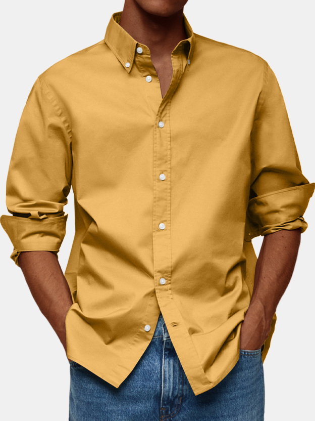 Men's Retro Solid Color Casual Lapel Comfortable Long Sleeve Shirt
