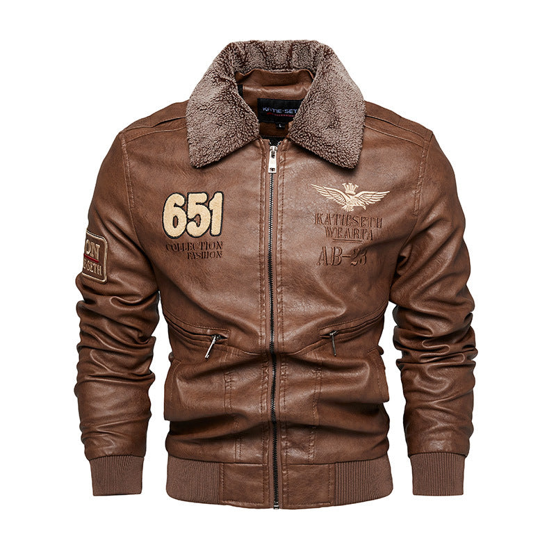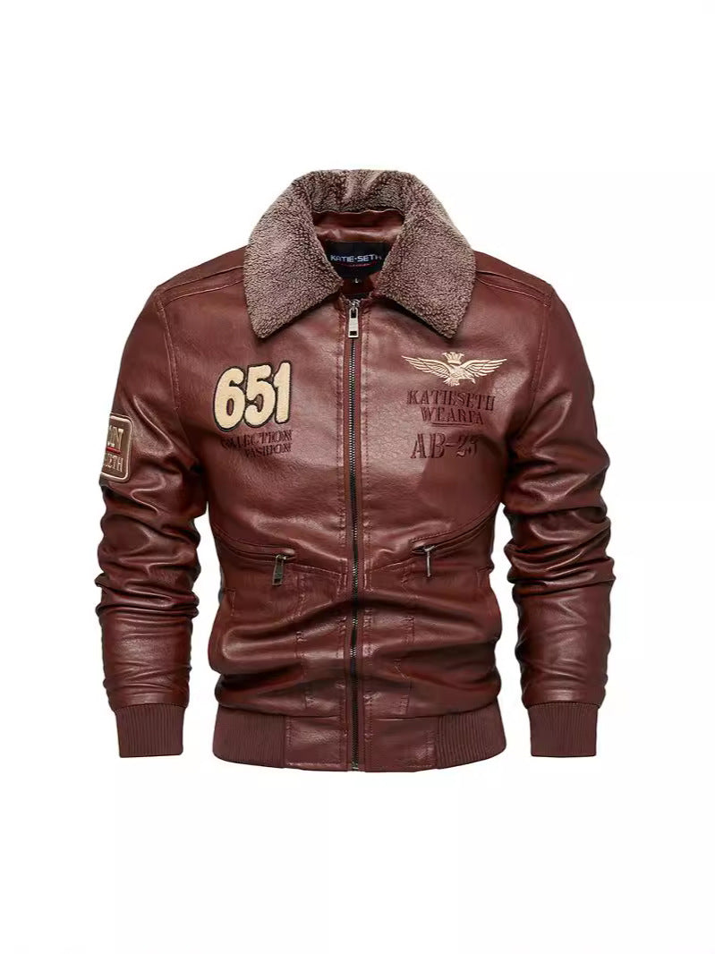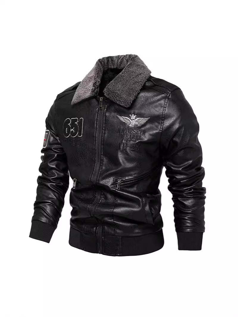 WINTER PLUSH COLLAR PU LEATHER JACKET/MEN'S JACKET COAT