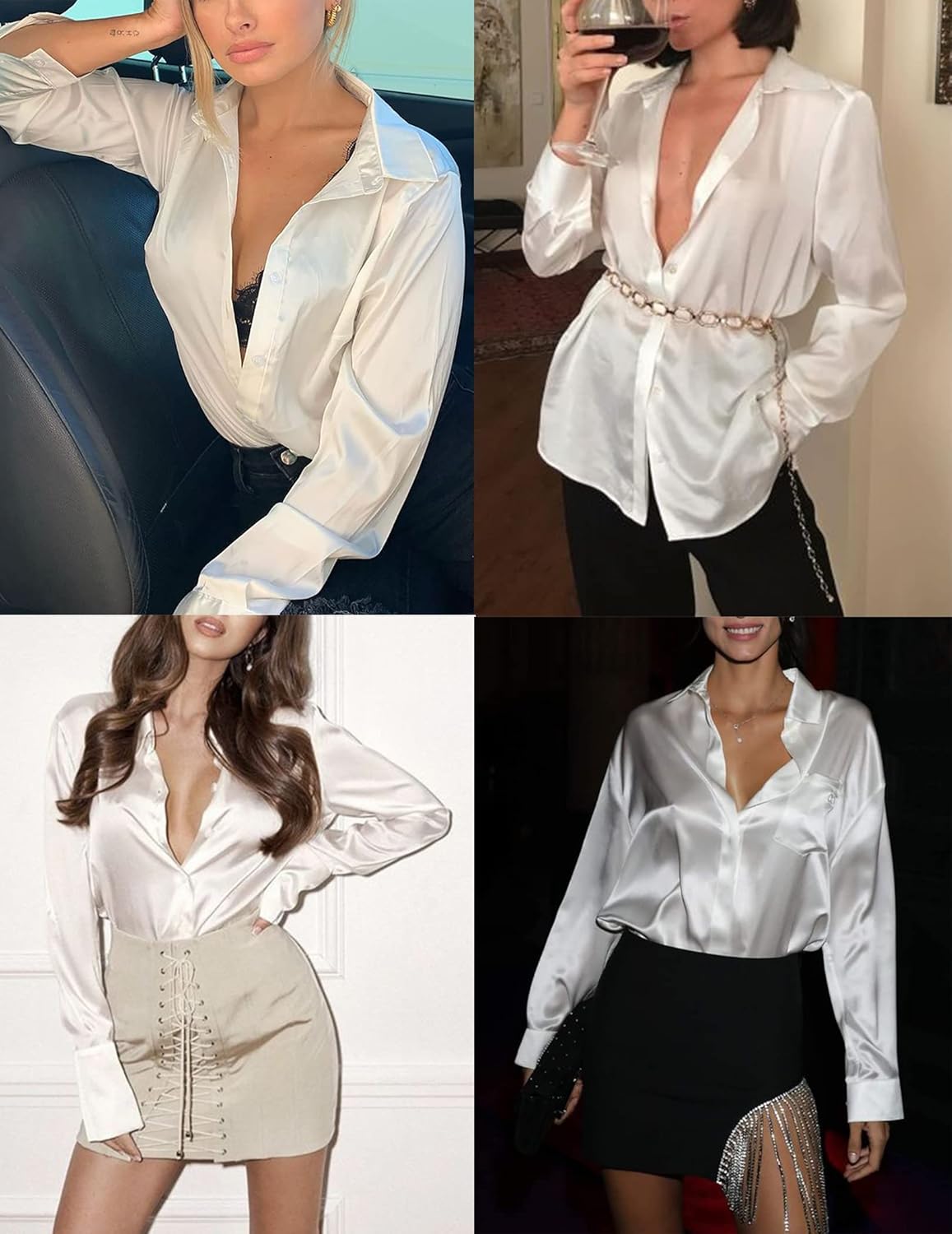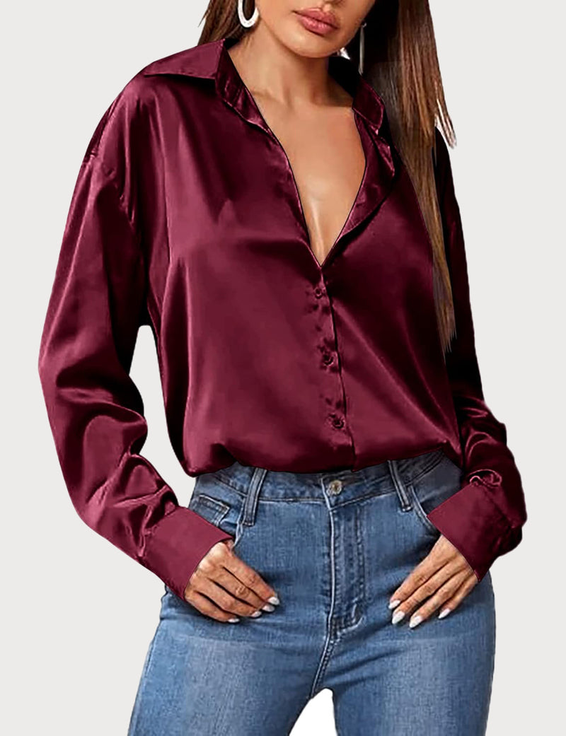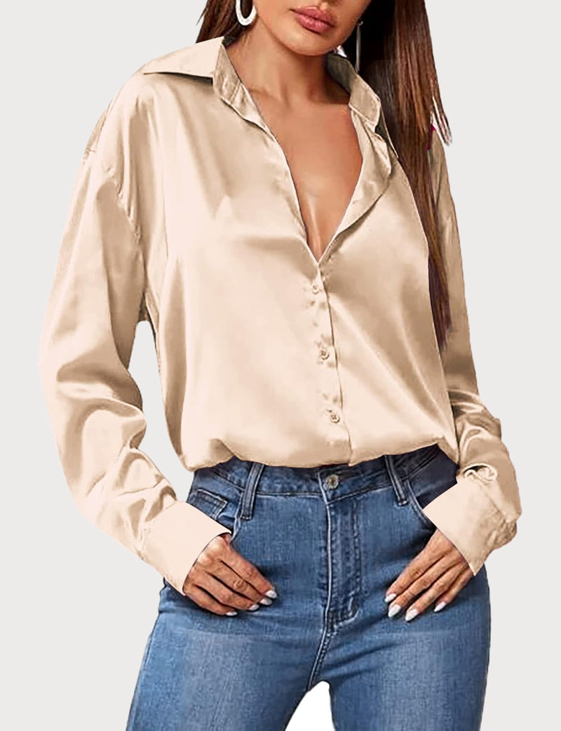 Zeagoo Women Satin Button Down Shirt Long Sleeve Tops