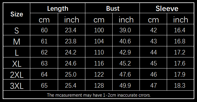 1. Asian sizes are 1 to 2 sizes smaller than European and American people. Choose the larger size if your size between two sizes. Please allow 2-3cm differences due to manual measurement.